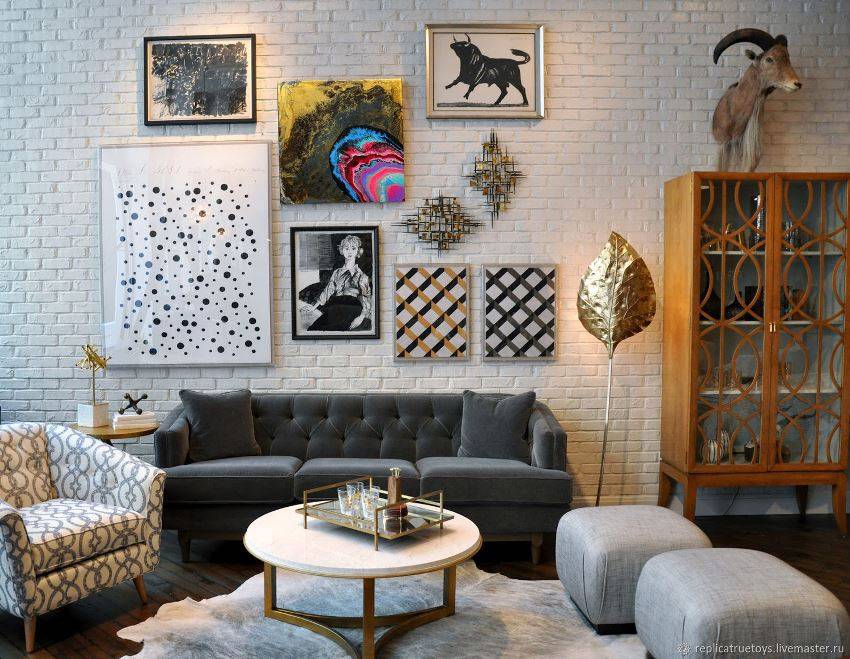 Стена с имитацией кирпичной кладки как акцент интерьера гостиной
