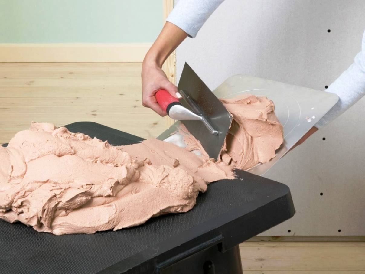 Для работы с гипсовыми штукатурками требуются шпатели и гладилки различных размеров и конфигурации, изготовленные из нержавеющей стали, алюминиевых сплавов или пластика.
