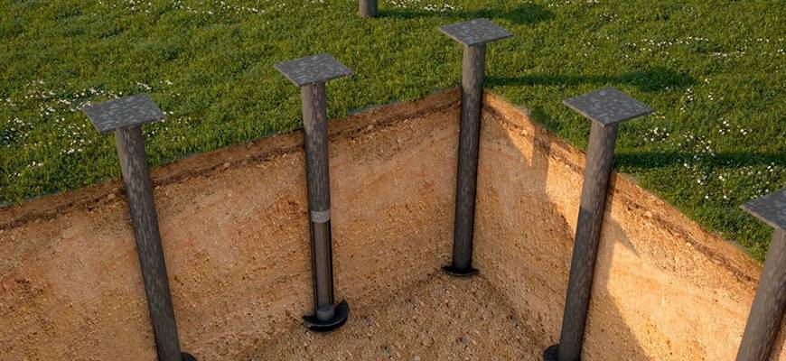- Применимость для всех типов грунтов и рельефов любой сложности. Там, где закладка ленточного или плитного основания будет неэффективной или нецелесообразной, используют опоры.