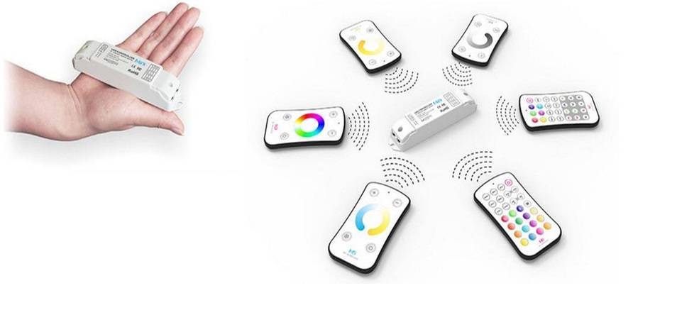 Контроллеры RGB – Если у вас есть мульти цветная RGB лента изменяющая цвет, тогда вам нужен контроллер RGB. Эти контроллеры управляют сменой цветов на красный, зеленый и синий каналы, чтобы смешивать цвета и создавать эффекты изменения цвета. Без этого устройства ваши светодиодные ленты RGB не будут работать правильно, поэтому не забывайте покупать их, если вы используете многоцветные светодиодные ленты.