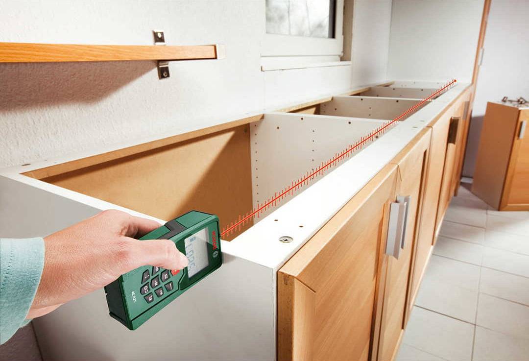 Воспользуйтесь электронной рулеткой, чтобы правильно определить длину кухонного гарнитура