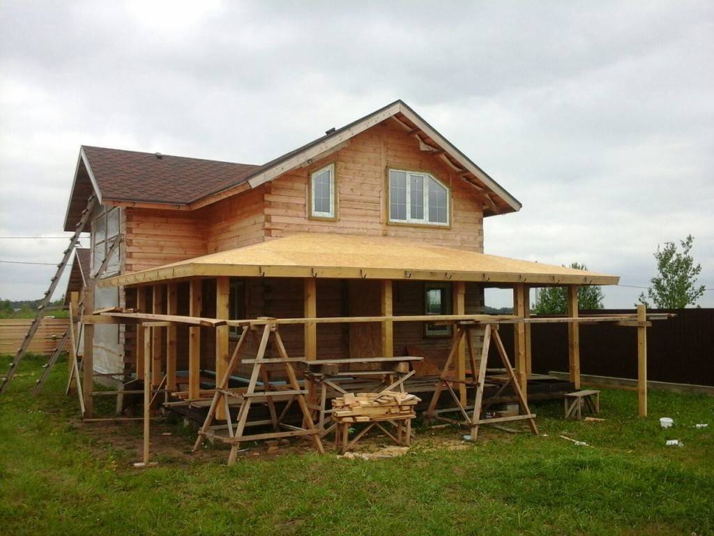 Пристройка веранды к деревянному дому. Монтаж кровли и пола