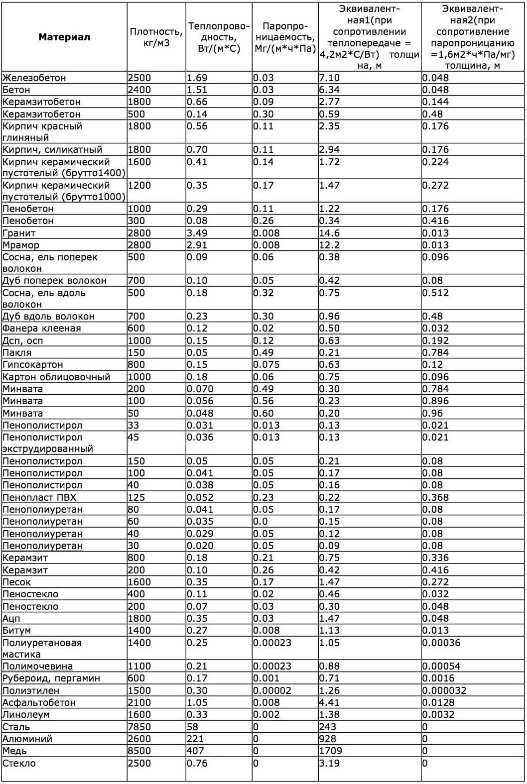 Таблица теплопроводности строительных материалов: коэффициенты