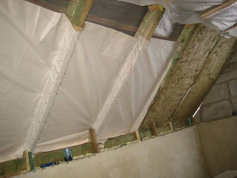 - сверху обрешетка покрывается пароизоляционной мембраной;