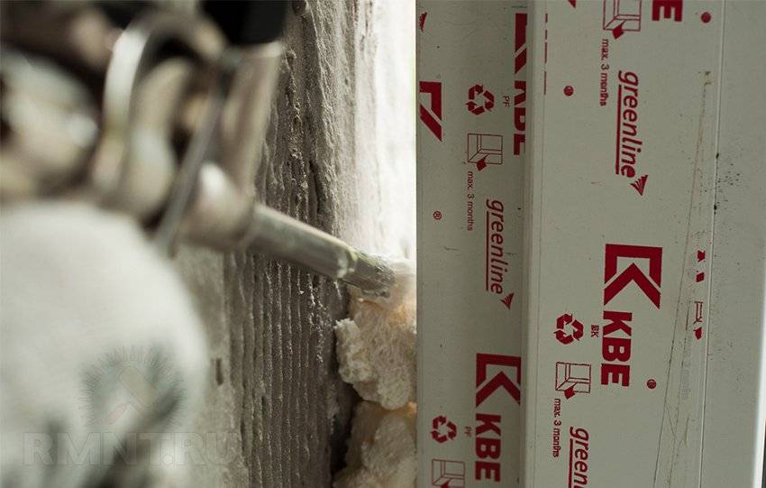 Проблема в том, что внешние блоки ввиду своей высокой пористости могут быть причиной конвекционных потерь тепла. Поэтому внешнюю часть проёма с заходом на наружную поверхность стен по 20–25 см следует обрабатывать гидроизолирующей мастикой. В остальном монтаж оконных блоков вполне тривиален: прямой монтаж сквозь раму, пенные швы достаточной толщины и надёжные опорные колодки под импостами гарантируют долговечность и плотность посадки.