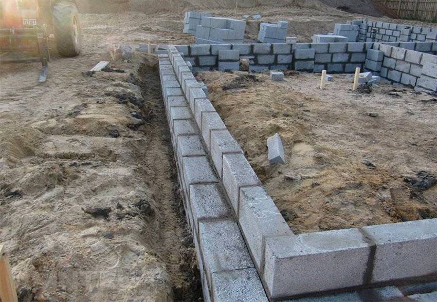- в один блок (40 см) – для дачных летних построек, а также для всесезонных построек при использовании достаточного слоя утеплителя;