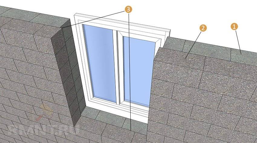 1 — керамзитобетонные блоки; 2 — керамзитные блоки; 3 — четверть 30 мм