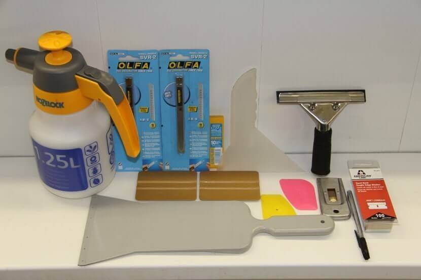 Необходимо подготовить нижеперечисленные инструменты и материалы: скальпель/нож; шпатель из резины; распрыскиватель; тонировочный материал; жидкое мыло; вода.