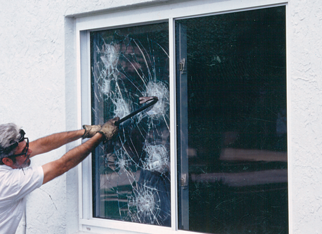 При нанесении ударов тяжёлым предметом по такому стеклу ограждение не разлетается на множество травмоопасных осколков. Стекло покрывается множеством трещин, но сохраняет свою целостность.