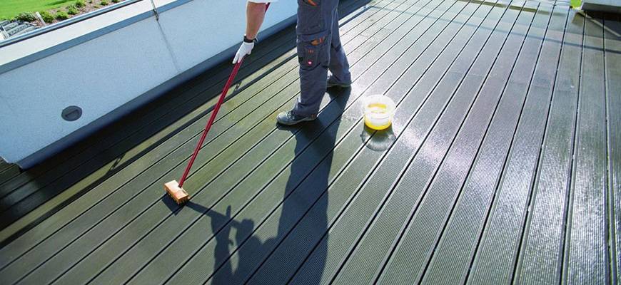 Террасная доска не нуждается в дополнительно обработке, однако, чтобы повысить срок службы материала, защитить древесину от вредителей и резких температурных перепадов декинг покрывают специальными составами. В частности: