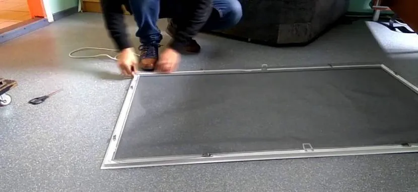 - Если наблюдается изгиб элементов рамки, каркас снимают и вставляют в его середину дополнительную пластиковую рейку.