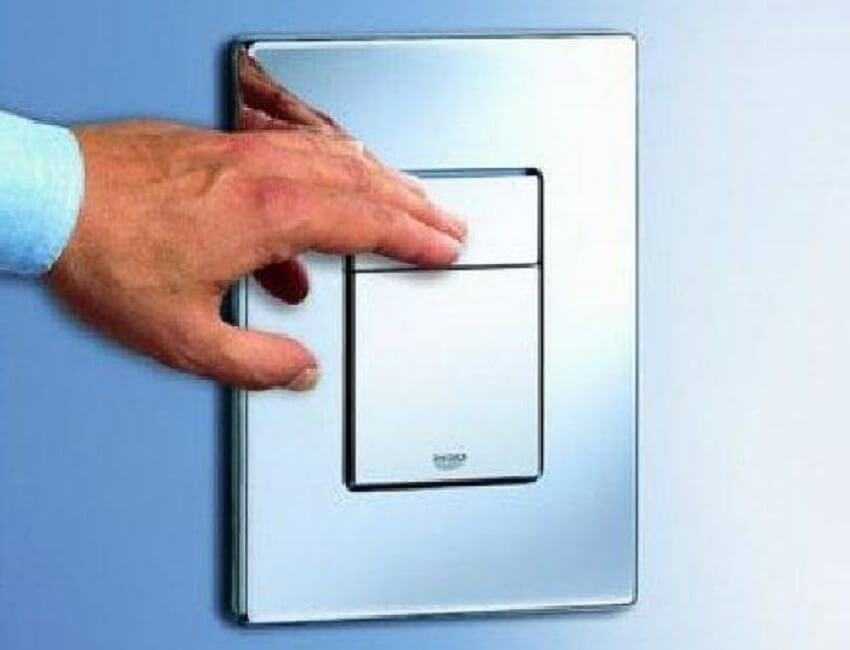- Используйте современные кнопки слива, которые позволяют экономить воду. Это могут быть две отдельные кнопки, одна из которых сливает полный объем воды бачка, а другая – половину. Другой вариант – наличие кнопок «Пуск» и «Стоп».
