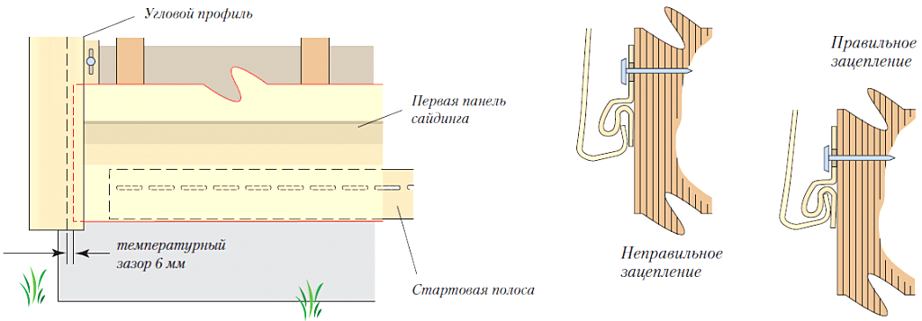 Установка первой панели сайдинга и правильное зацепление замка профиля