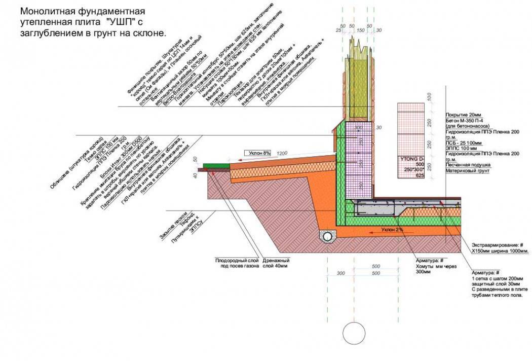 2. Не подойдет для неровных участков. УШП проблематично строить на склоне, да и не целесообразно. Но плитный фундамент также имеет этот недостаток.