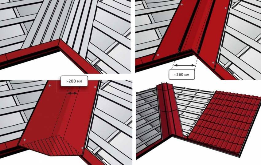 - до укладки металлочерепицы во внутренних стыках ската необходимо прикрепить ендову;