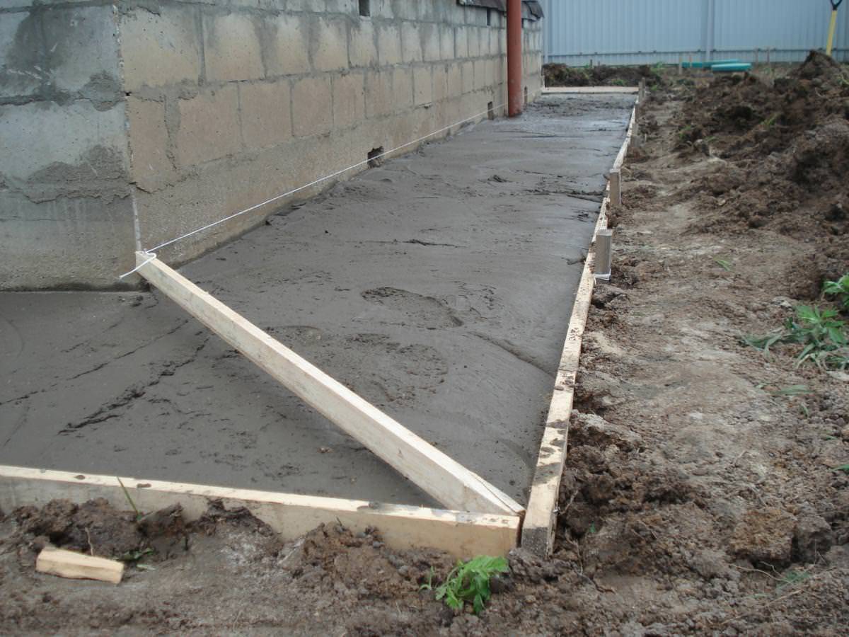 - Выполнение опалубки из досок высотой в двадцать сантиметров. Опалубка должна быть строго прямоугольная с соблюдением выверенных и точных углов и гладкой внутренней поверхностью.