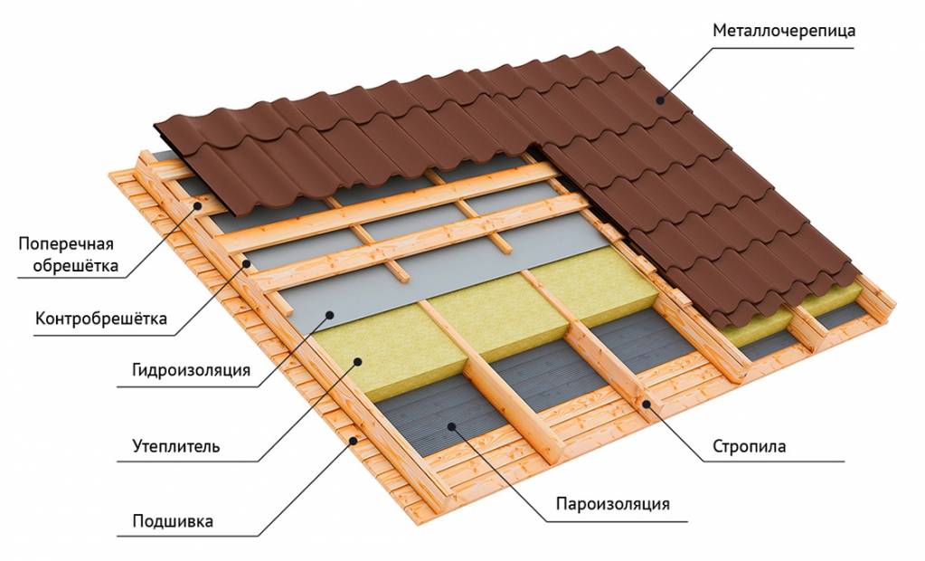 Рисунок 1. Качественный «кровельный пирог» с теплоизоляцией и защитными мембранами
