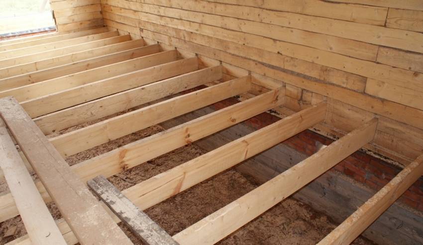 Технология строительства предусматривает укладку лаг, на которых будет укрепляться черновой пол
