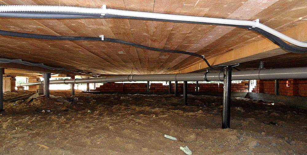 В силу конструктивных особенностей свайного фундамента между домом и землёй всегда существует открытое пространство. Высота подпола бывает разной и достигает иногда значений более 1 м. В холодное время года происходит отток тепла от нижних частей стен и от пола в продуваемый и всегда холодный подпол. Кроме того, тепло забирают сваи, будь то винтовые металлические или монолитные железобетонные.