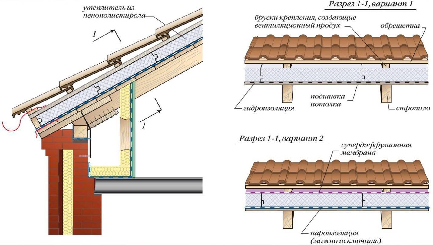 Еще один важный момент: если вы используете несколько видов утеплителя (да, так тоже можно), то нижний слой должен быть наименее паропроницаемый. Другими словами, укладывать минеральную вату на пенопласт можно, а пенопласт на минеральную вату — нельзя. Если есть необходимость в шумоизоляции, рекомендуется использовать минвату с плотностью 40 кг/м³.