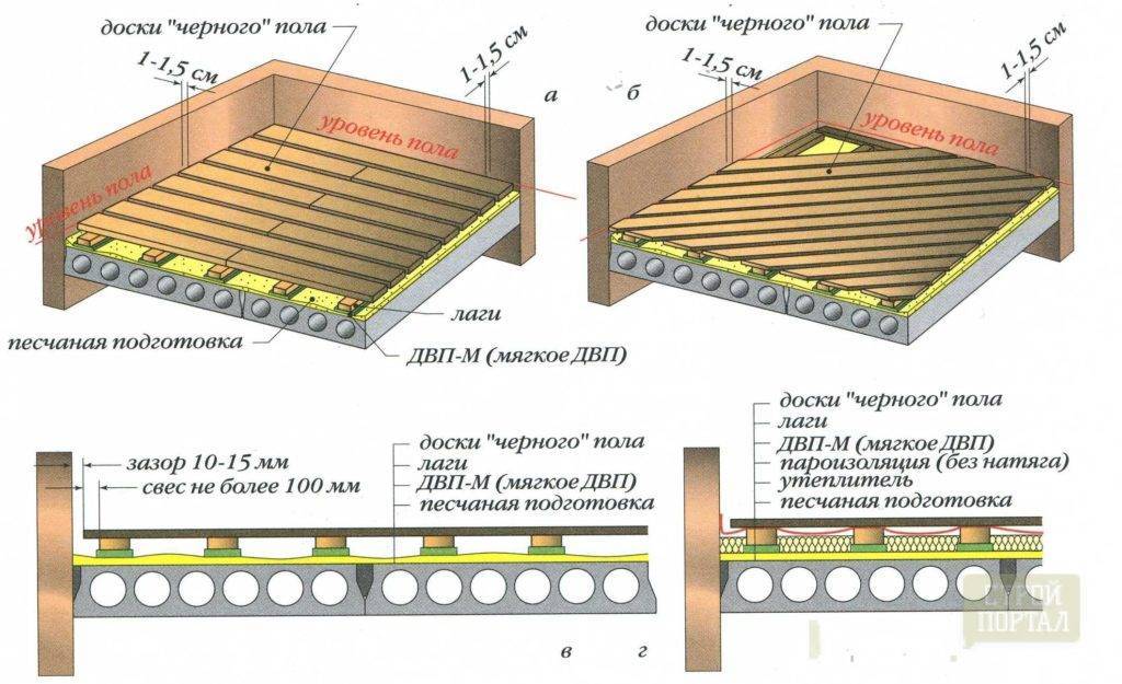 Принцип выполнения звукоизоляции пола при помощи мягких древесно-волокнистых плит