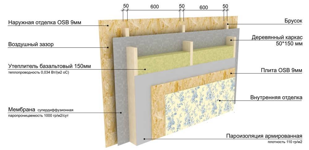 В правильном каркасном доме технология их выполнения схожа и сводится к созданию “пирога”, состоящего из нескольких слоев.