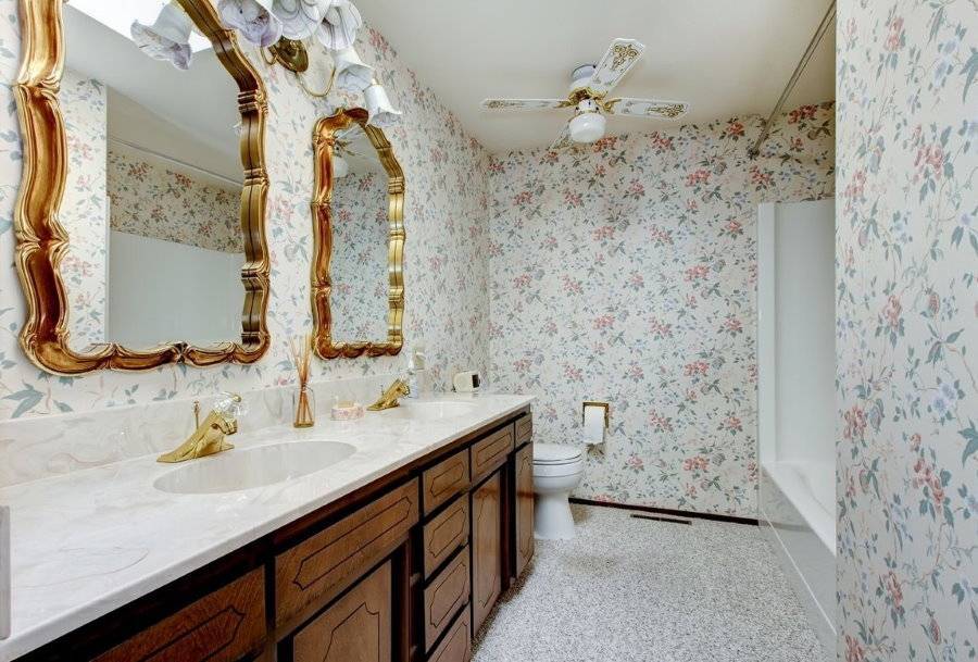Водостойкие обои с растительным принтом в ванной классического стиля