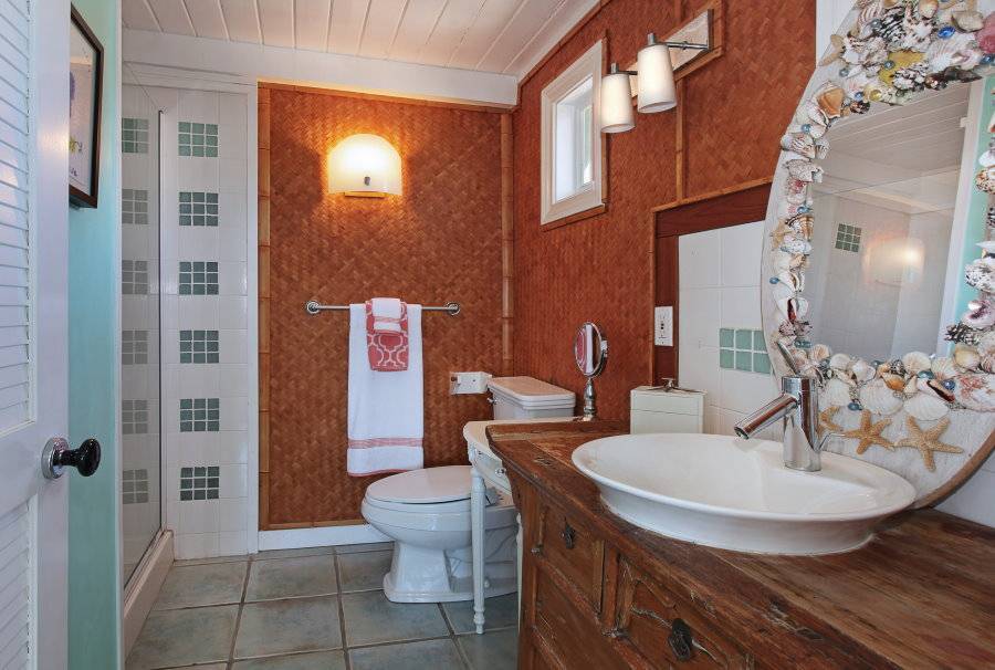Очень модное направление в дизайне ванных комнат – эко-стиль, для которого можно использовать деревянную вагонку. В строительных магазинах продается специальная древесина для обработки настенных поверхностей в ванных. Деревянный материал не гниет за счет того, что дерево в процессе производства сильно высушивается, а затем пропитывается специальным раствором, обеспечивающим влагостойкость изделия.