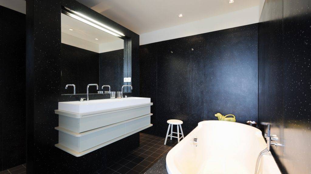 Как ни странно, но мрачный черный цвет панелей пользуется большим спросом. Производители не очень любят выставлять на рынок материал черного цвета. Поэтому за ним идет настоящая охота. Если вы остановите выбор именно на темной облицовке, попробуйте сочетать панели с более веселыми цветами. Так ваша ванная будет выглядеть стильно, но не мрачно.