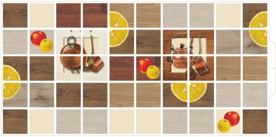 - Керамическую плитку необходимо класть на ровные поверхности, а для стеновой панели это необязательный фактор. К тому же она сама прекрасно может скрыть все неровности стены.