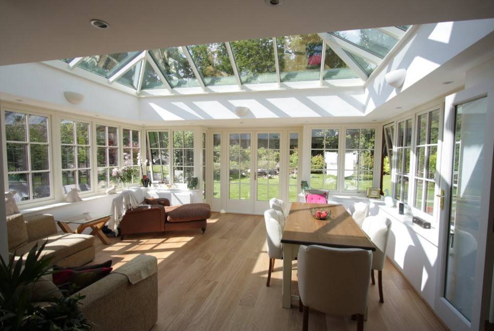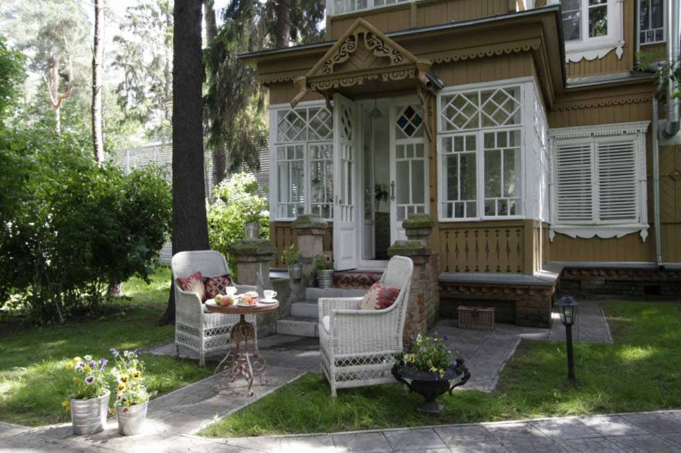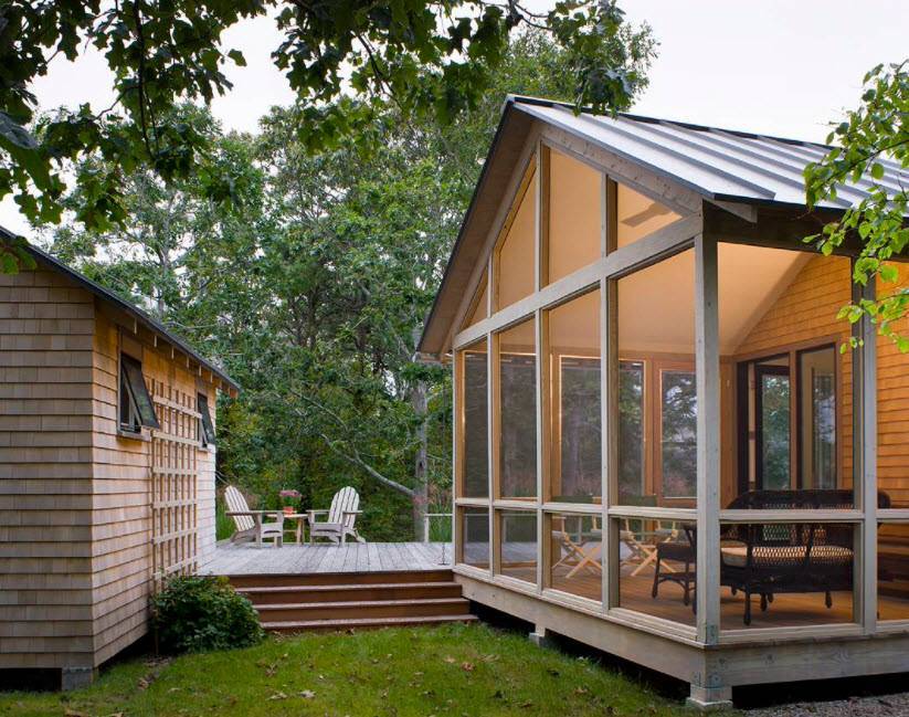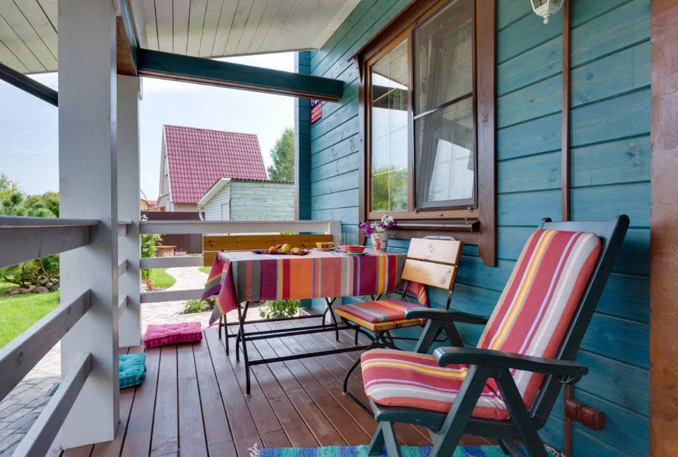 Мы не будем приводить примеры по дизайну нереальных веранд загородных домов, где преобладают небывалые просторы, а из окон открывается потрясающий вид. Подобных фотопримеров в интернете можно найти великое множество. Но не всегда подобный размах уместен в пределах небольшого дачного домика на участке в десять соток. Да и вид, который откроется перед многими, – это сад или газон с декоративными растениями, созданный своими руками. Наши предложения по оформлению будут практичными, не менее притягательными и более доступными. Начнем с самого простого.