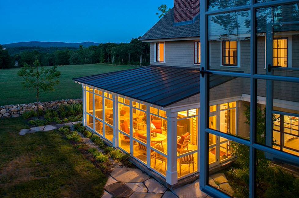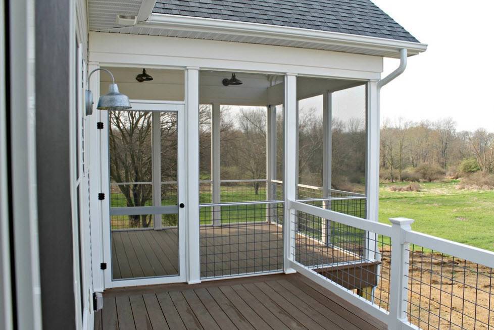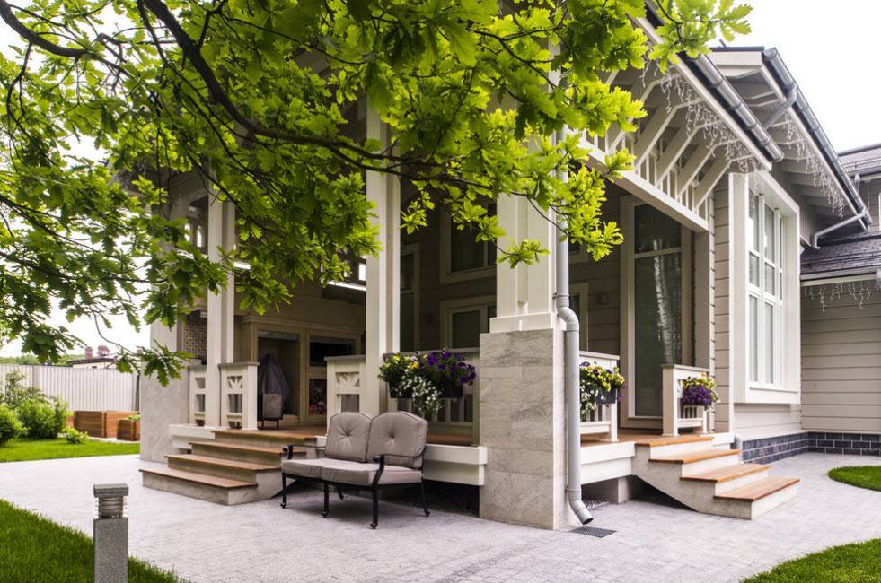 - В идеальном варианте веранда должна располагаться таким образом, чтобы вы смогли попасть на нее прямиком с входной двери. То есть непосредственно перед входом в дом. В таком случае ни снег, ни дождь не смогут препятствовать вашему свободному перемещению;