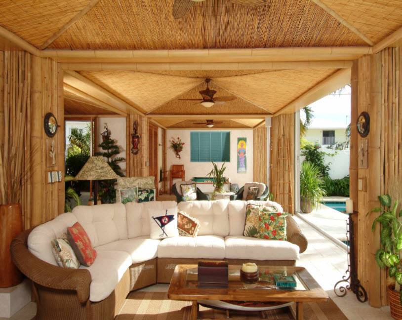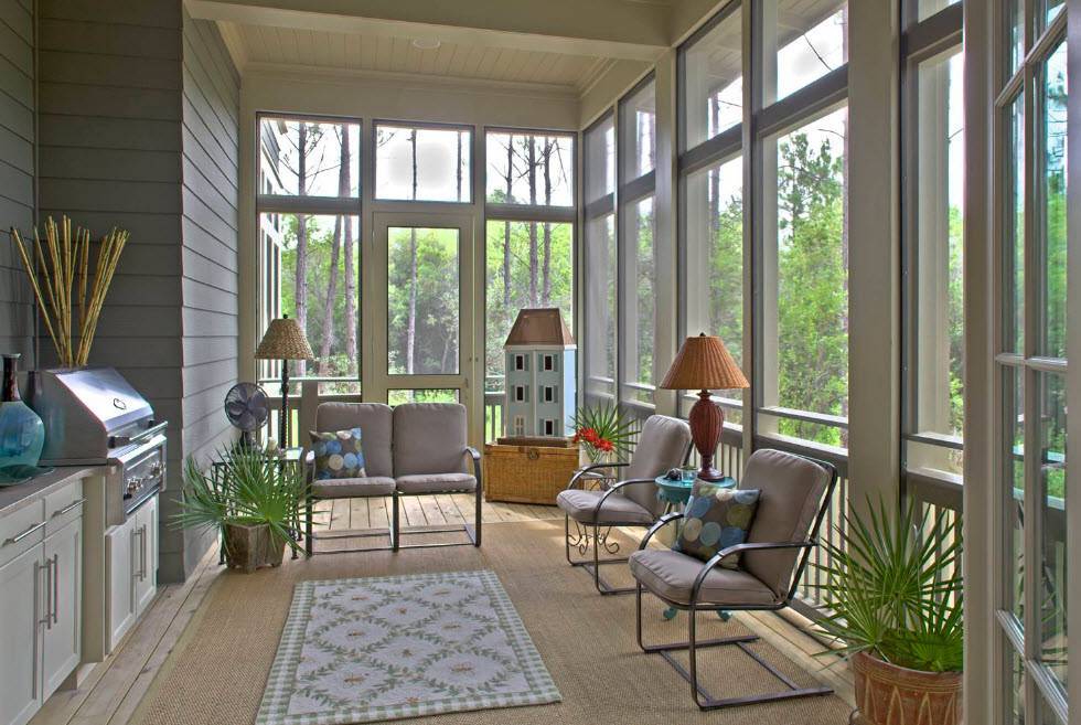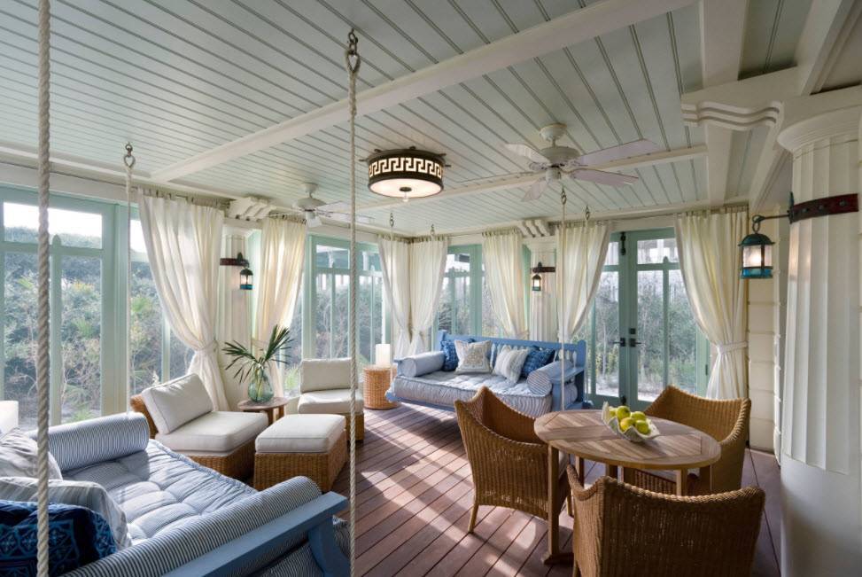 Многие специалисты утверждают, что дизайн веранды должен соответствовать дизайну всего дома. Можно придерживаться подобной тактики и действительно оформить все помещения в одном стиле. Но учитывая, что веранда — несколько обособленное помещение, можно выбрать для ее оформления какое угодно направление. Может, внутренняя отделка дома была продиктована некими обстоятельствами, а на веранде можно ни в чем себе не отказывать.