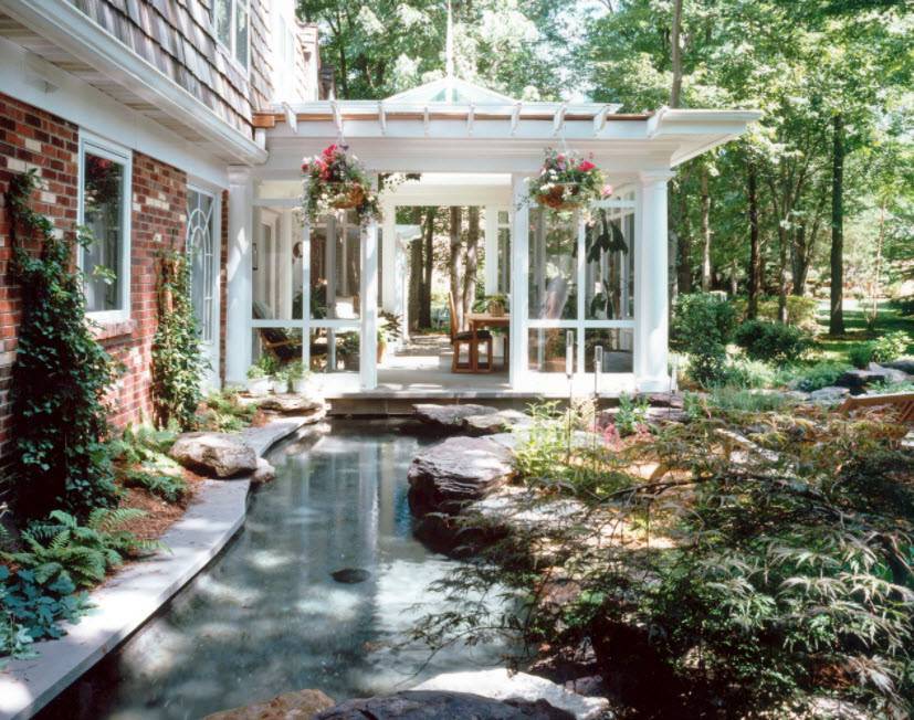 - Еще одно правило, которым следует руководствоваться при выборе места для пристройки, это вид, который будет открываться перед вами. Во многих случаях вся красота и различные декоративные насаждения расположены за домом. Значит, там и место для зоны отдыха. Даже если придется пожертвовать удобством прохода на веранду прямо из дома, вы ни сколько об этом не пожалеете в будущем;