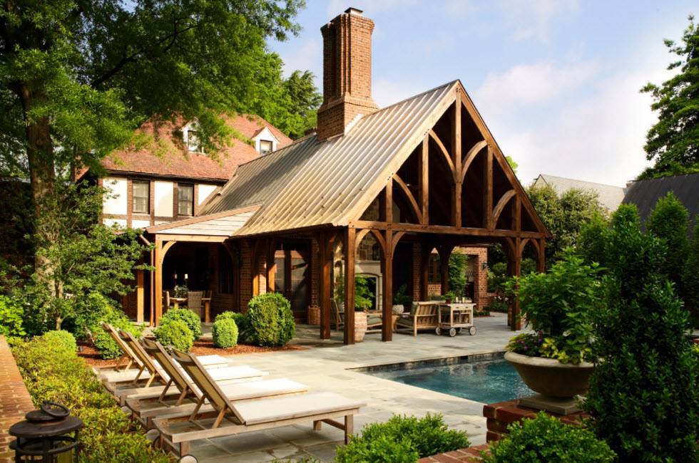 Популярным вариантом садовых построек является открытая терраса, возведенная вплотную к дому. Для этого существует ряд причин:
