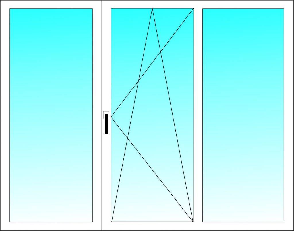 Конструктивное исполнение самих окон может существенно отличаться. Такие конструкции состоят из рамы и трех створок. Размеры и порядок работы таких конструктивных элементов может существенно отличаться. В одном случае фиксируют центральную створку, а боковые делают открывающимися, во втором случае наоборот – фиксируют боковую, а центральная может открываться.