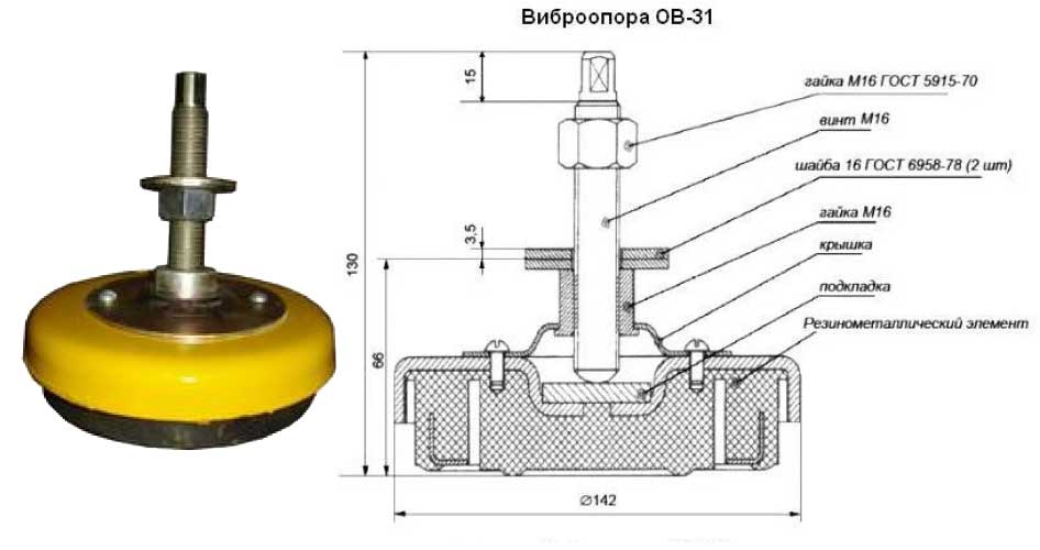В связи с тем, что самым распространяем видом виброопор являются резинометаллические, то имеет смысл обозначить его основные рабочие элементы: