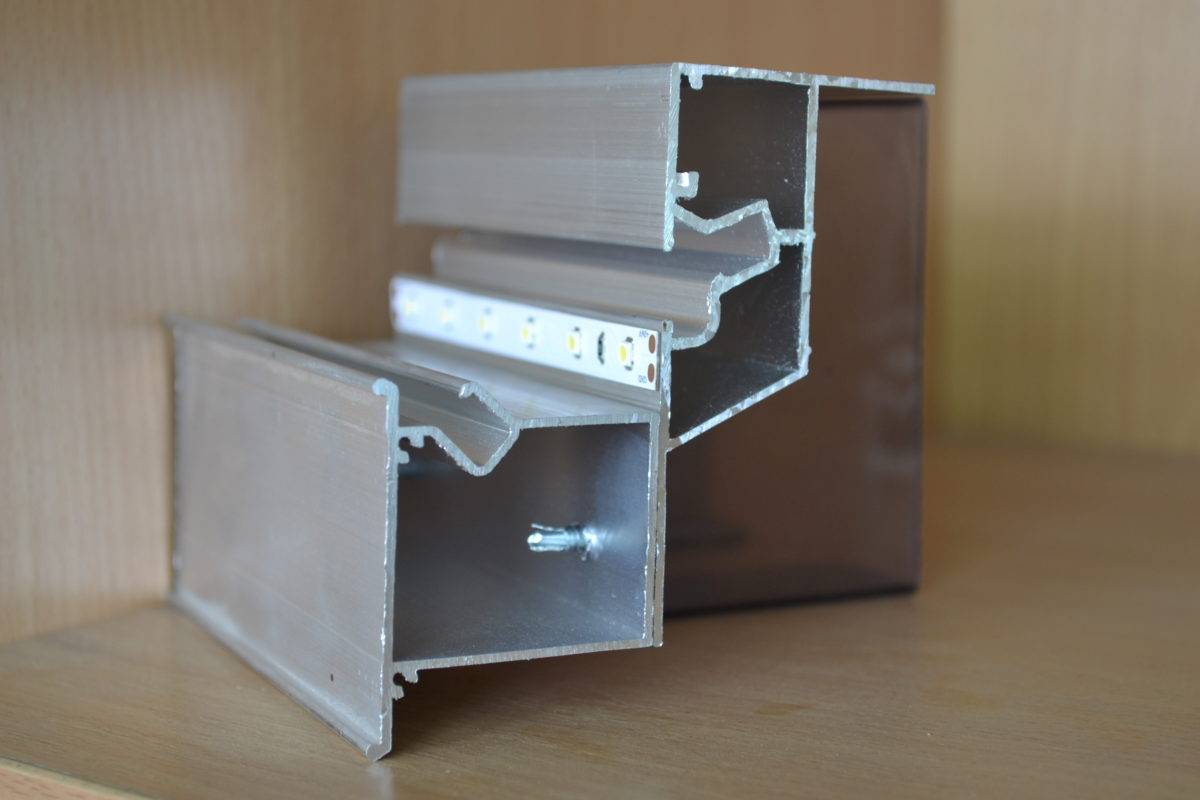 - КП — выступает в роли несущего элемента каркаса для крепления профиля НП, конструкция образует место для установки светодиодной ленты.