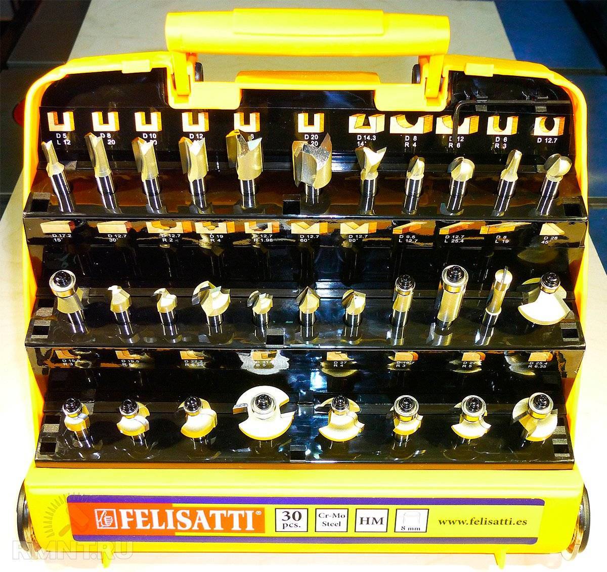 Наборы продаются в специальных фанерных ящичках со специальными гнездами для установки фрез. Ухаживать за таким инструментом проще всего — надо защитить их от контактов с атмосферной влагой. Проще всего поместить контейнер в полиэтиленовый пакет, что обеспечит надежную защиту от сырости. Отдельные элементы хранят в собственных упаковках (если есть) или в отдельных контейнерах.