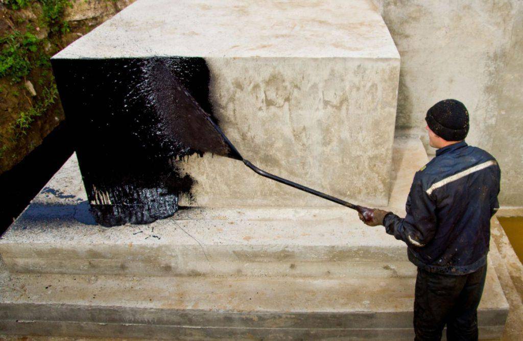 - Далее наносится одним слоем мастика. Данный материал повышает адгезию между основной гидроизоляцией и фундаментом.