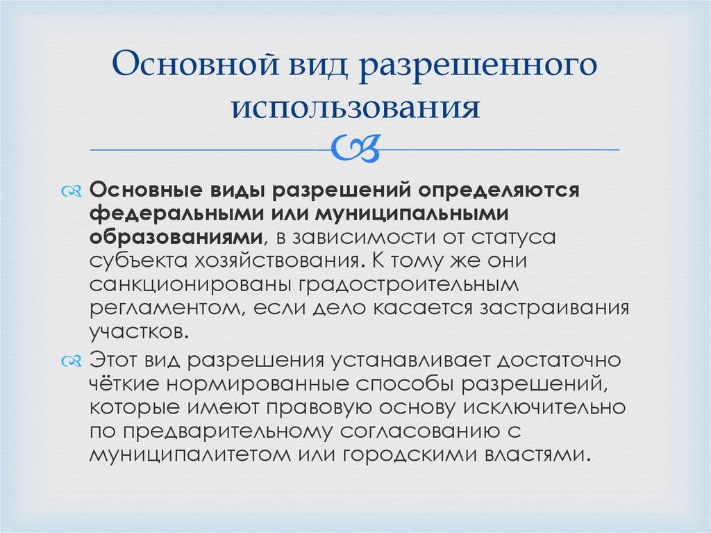 Отличительной особенностью условно разрешенного вида является получение разрешения у соответствующих органов.