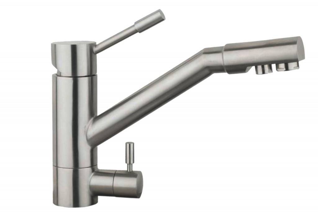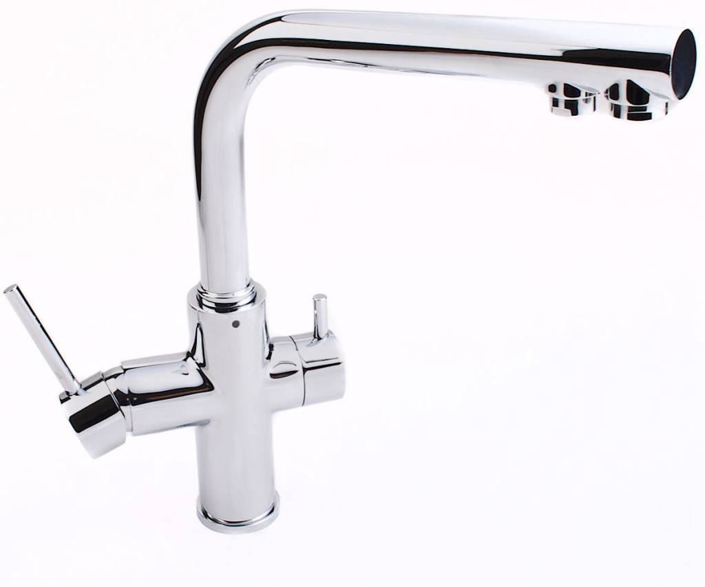 Водопроводная вода достаточно плохого качества и считается неприемлемой для употребления в пищу. Специалисты советуют устанавливать фильтры для ее очистки. А также на сегодняшний день производители сантехники решили эту проблему по-своему – с помощью выпуска моделей с системой фильтрации. Она включает два этапа. Сначала удаляются примеси и включения, а затем активированный уголь очищает от хлора. Также конструкция отличается наличием тонкой трубки запорной арматуры. Второй кран рассчитан на подачу неочищенной воды.