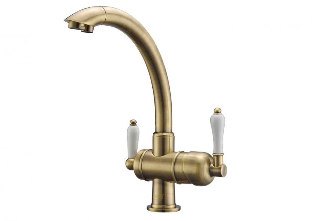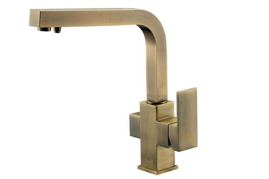 Для классических кухонь ( в стиле прованс, классика, шебби шик, кантри) подойдет бронзовый, медный или золотой двухвентильный смеситель.