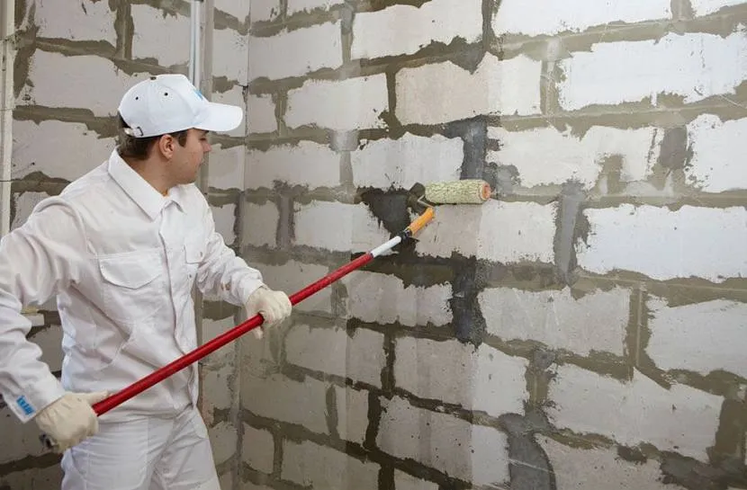 На подготовительном этапе стены очищают от остатков кладочного раствора. При необходимости заполняют раствором «пустые» швы и сколы на ребрах блоков, чтобы поверхность была максимально ровной.
