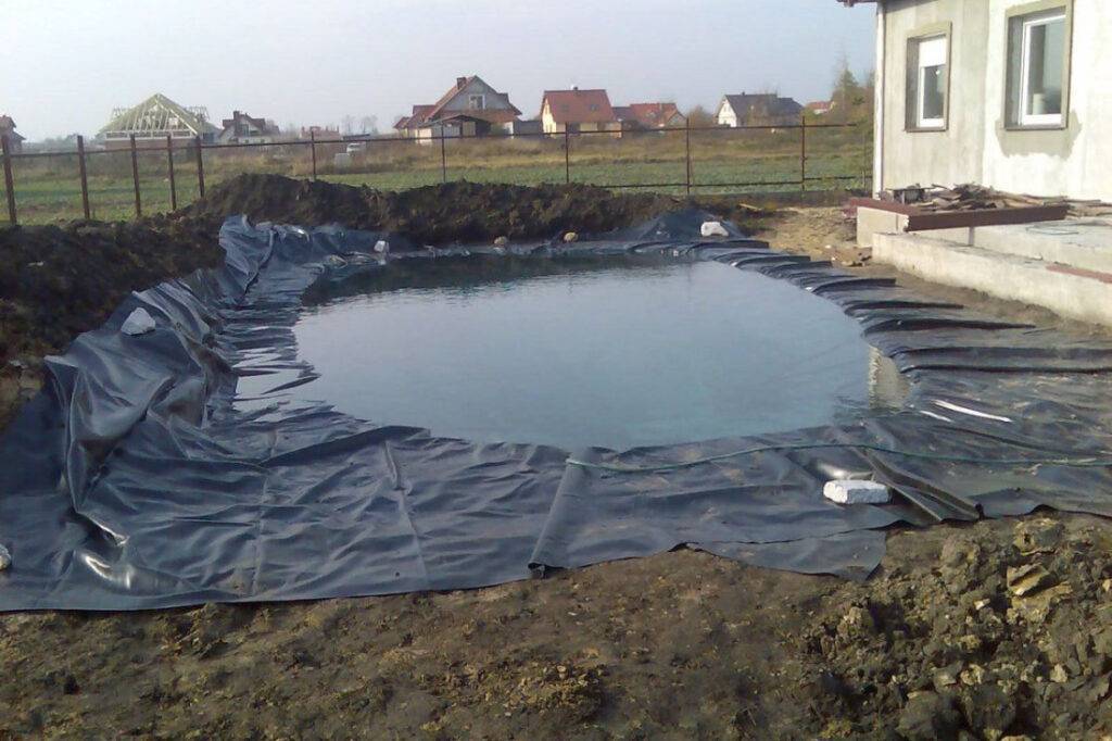 Срок службы водоема с использованием данного материала — 50 лет. Стоимость его высокая, а технология работ достаточно сложная.