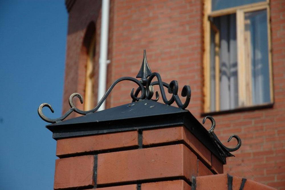 Металлические клинкера сегодня имеют большое распространение. Их изготавливают из нержавеющей и оцинкованной стали, жести, медных сплавов. Вес незначительный, цена доступна, можно купить в любом строительном магазине. Как вариант, кованые колпаки на столбы повышают художественную ценность, если установка произведена на металлические ограждения с аналогичными вкраплениями или на каменные конструкции. Их цена может быть выше, чем у каменных изделий.