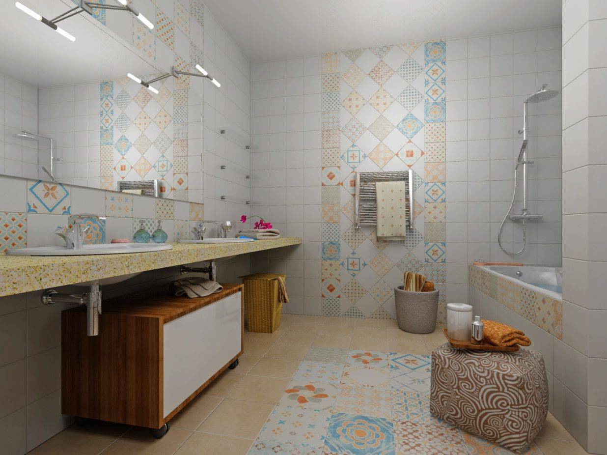 Плитка пэчворк в ванной является оригинальным дизайнерским решением.