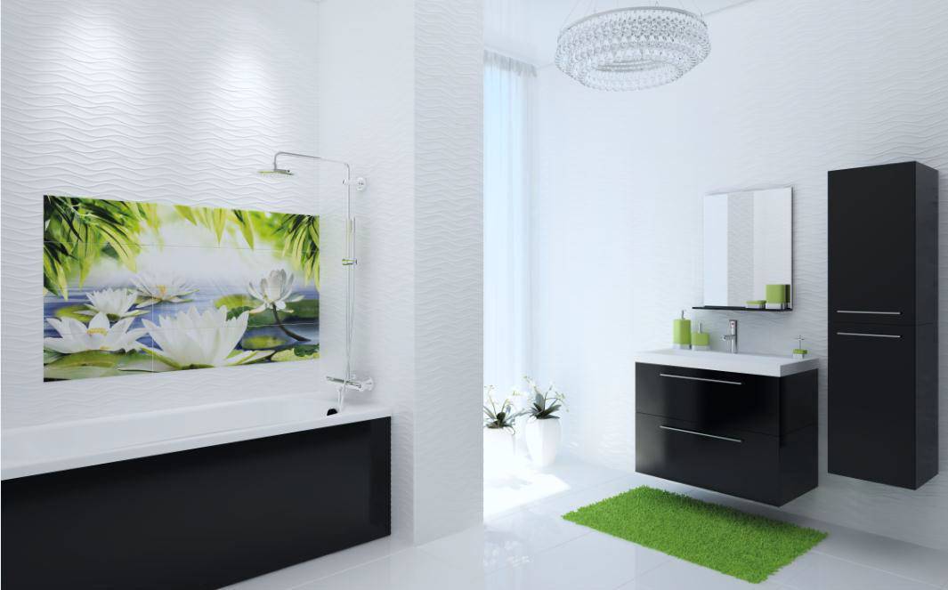 - Для оформления ванных, санузлов действует правило: чем крупнее плитка, тем лучше она выглядит на стене;