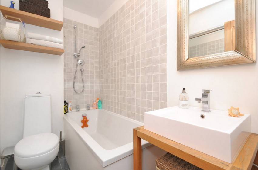 лаконичностью — чем меньше лишних предметов и вставок, тем свободнее пространство, что важно для маленьких ванных комнат в «хрущевках»;