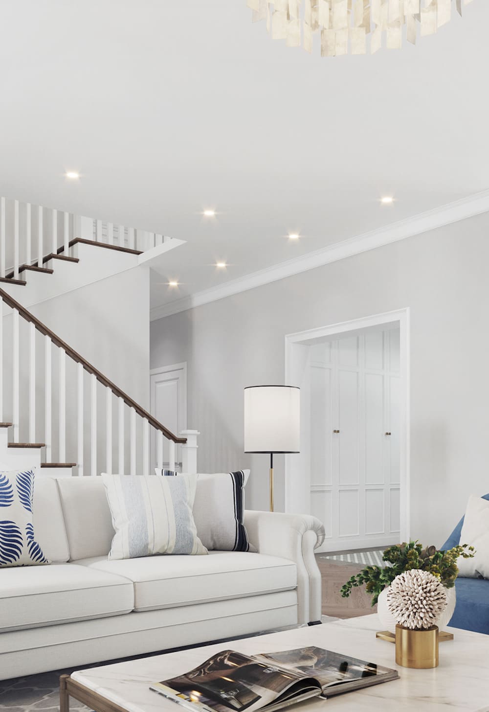 Ряд уровней с утопленными лампами в сочетании с изящным естественным светом в дневное время – это идеальный способ для достижения подобной цели.